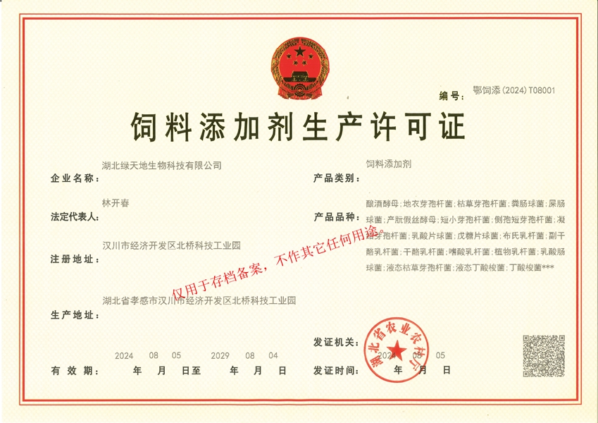 湖北綠天地生物科技有限公司 (簡稱綠天地公司)投資7000萬元,擁有25000平方米的廠房和國內(nèi)先進的設備360臺套,建有微生物發(fā)酵、發(fā)酵冷凍干燥、低溫造粒等8個車間,發(fā)酵罐總容量450立方米,專業(yè)的飼用級益生菌發(fā)酵生產(chǎn)基地。 公司已通過IS09001:2015質(zhì)量管理體系認證。 綠天地公司得到了華中農(nóng)業(yè)大學、中國農(nóng)...